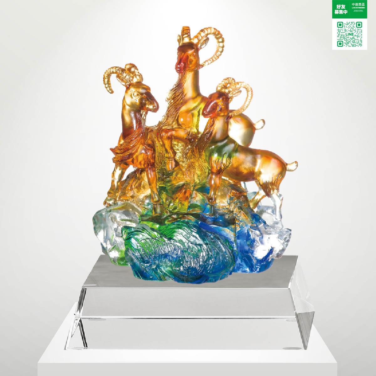尺寸: 25.5*21*29 CM 材質 : 琉璃+水晶 內容 : 含雕刻字+上金+錦盒+提袋