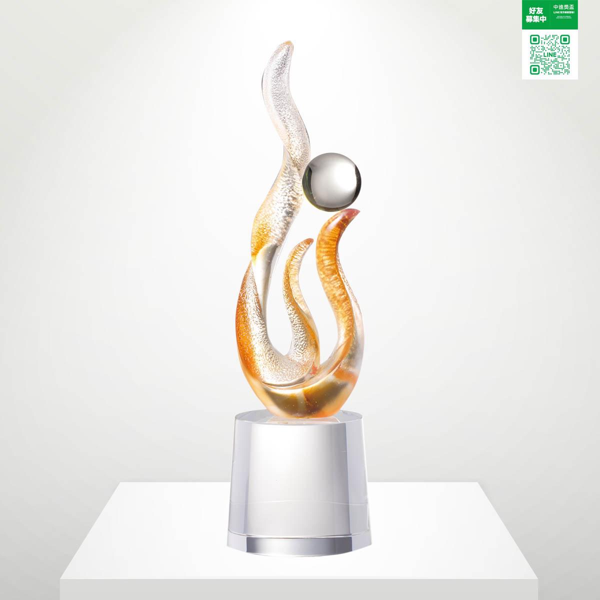尺寸: 9*9*32 CM 材質 : 琉璃+水晶 內容 : 含雕刻字+上金+錦盒+提袋